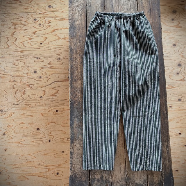 English follows below UNISEX 会津木綿テーパードパンツ|コーディネイトしやすいテーパードシルエット会津木綿のパンツ すっきり見えるけどゆとりも十分あり、動きやすくて耐久性に優れ、何にでも合わせやすい欲張りパンツ。 柔らかいゴムを使用したウエストは、締め付け感がなく快適な着心地です。また、左内側にはゴム交換用の隙間があり、長くご愛用いただけます。 シームを利用したヒップポケット付き。 素材について シャトル織機でゆっくり織られた天然素材、会津木綿を使用しています。 会津木綿は空気をたくさん含んでいるため、軽く速乾性に優れ、夏は涼しく冬は暖かでオールシーズン着用可能な、会津若松生まれの小幅綿織物です。着て洗ってを繰り返すことで体に馴染み、あなただけの特別な服に育っていきます。 サイズについて Mサイズ ウエスト 102㎝ ゴム上がり 65㎝ ヒップ 114㎝ 股下 65㎝ 脇丈 96㎝ (*脇丈:ウエスト~裾までの長さ) Lサイズ ウエスト 106㎝ ゴム上がり 70㎝ ヒップ 120㎝ 股下 65㎝ 脇丈 94㎝ (*脇丈:ウエスト~裾までの長さ) -------------------------------------------------------- 製品番号 U-06-007 生産国 日本 素材 綿100% 会津木綿 attention 〇キバタを製品洗しているため、寸法に多少のブレがございます 着用写真 女性 身長165㎝ 男性 身長168㎝ 男女ともにMサイズ・笹竹着用 UNISEX Aizu Cotton Tapered Pants|Versatile & Easy-to-Style Tapered Silhouette These versatile tapered pants offer a sleek look with ample room for movement, ensuring both comfort and durability. Designed to pair effortlessly with any outfit, they are the perfect balance of style and practicality. The soft elastic waistband provides a secure fit without tightness, making them incredibly comfortable to wear. Additionally, a small opening on the left inner waistband allows for easy elastic replacement, ensuring long-lasting use. The pants also feature hip pockets seamlessly integrated into the side seams for added functionality. Material Crafted from Aizu cotton, a natural fabric woven slowly on a shuttle loom, these pants showcase the rich textile tradition of Aizuwakamatsu. Aizu cotton is lightweight, highly absorbent, and quick-drying, trapping air to keep you cool in summer and warm in winter, making it an ideal fabric for all seasons. With each wear and wash, the fabric softens, gradually molding to your body and evolving into a truly personal piece. Size Details M Size Waist: 102 cm (Elastic at rest: 65 cm) Hip: 114 cm Inseam: 65 cm Side Length: 96 cm (Waist to hem) L Size Waist: 106 cm (Elastic at rest: 70 cm) Hip: 120 cm Inseam: 65 cm Side Length: 94 cm (Waist to hem) ------------------------------------ Product Number: U-06-007 Country of Origin: Japan Material: 100% Cotton (Aizu Cotton) Attention 〇Due to the use of pre-washed untreated fabric (greige fabric), slight variations in dimensions may occur. Wearing Photos: Female Height 165 cm M size Male Height 168 cm M size