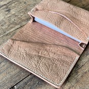 This high-quality business card holder is crafted from premium deerskin sourced from Mie Prefecture. It features a simple yet rugged design that highlights the natural texture of the leather.