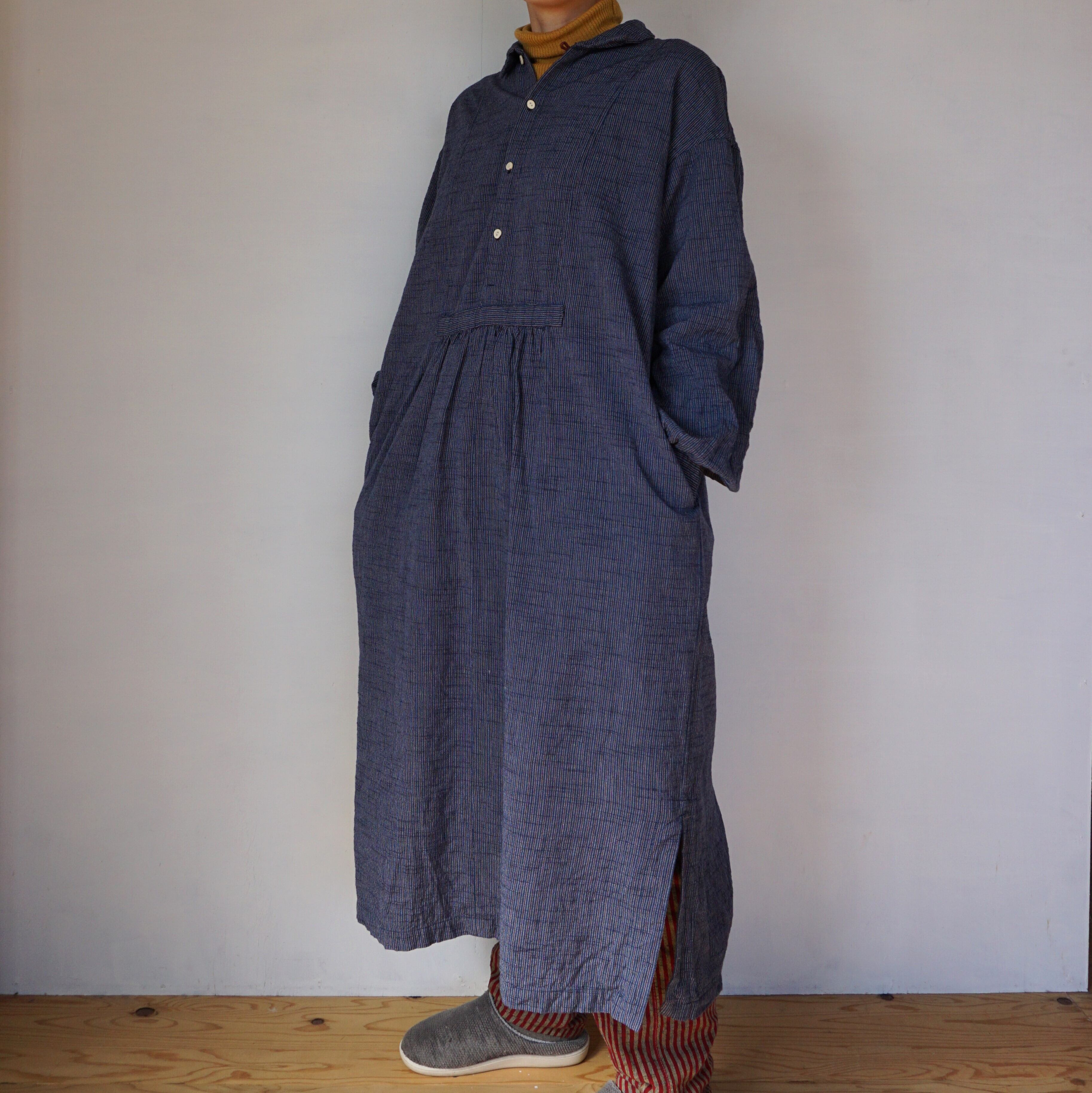 UNISEX 会津木綿クラシックロングシャツ 縞
