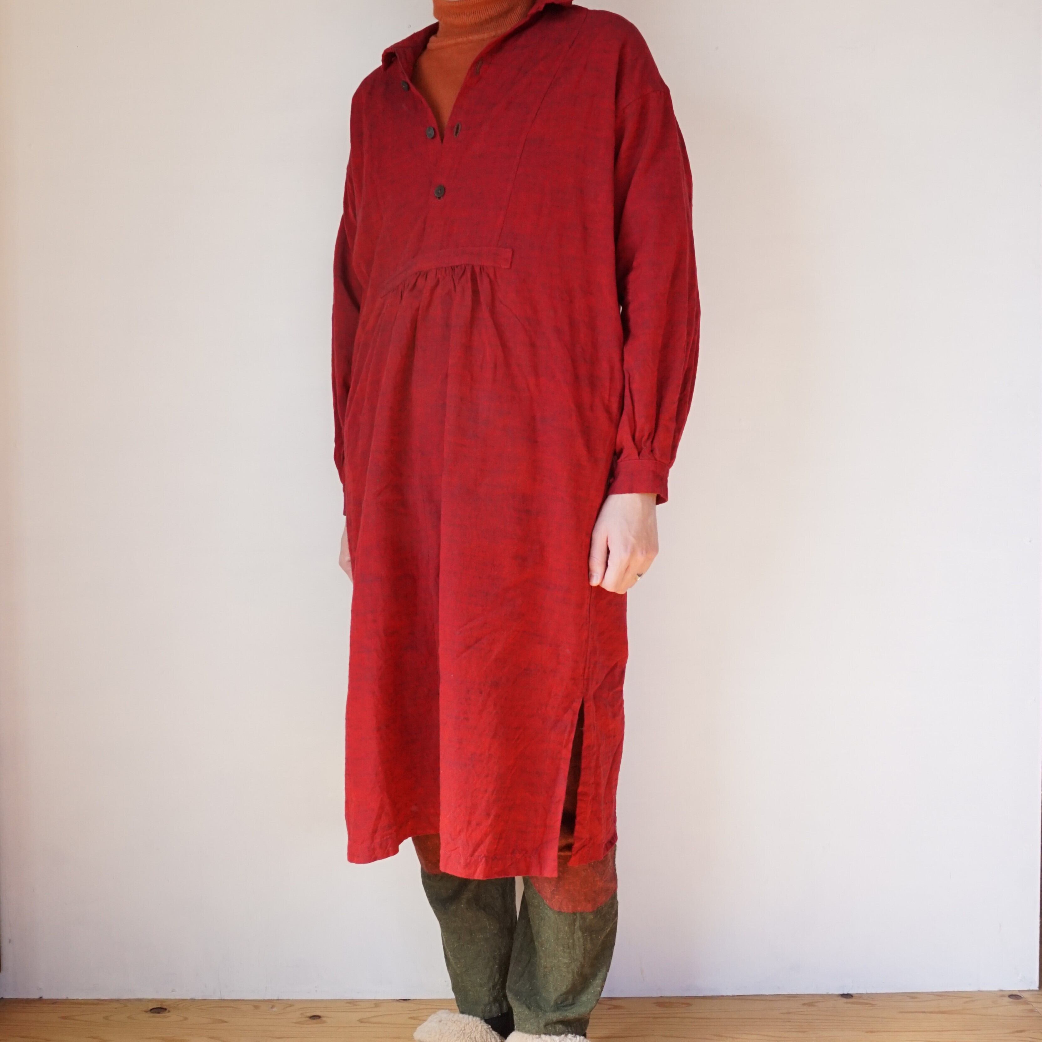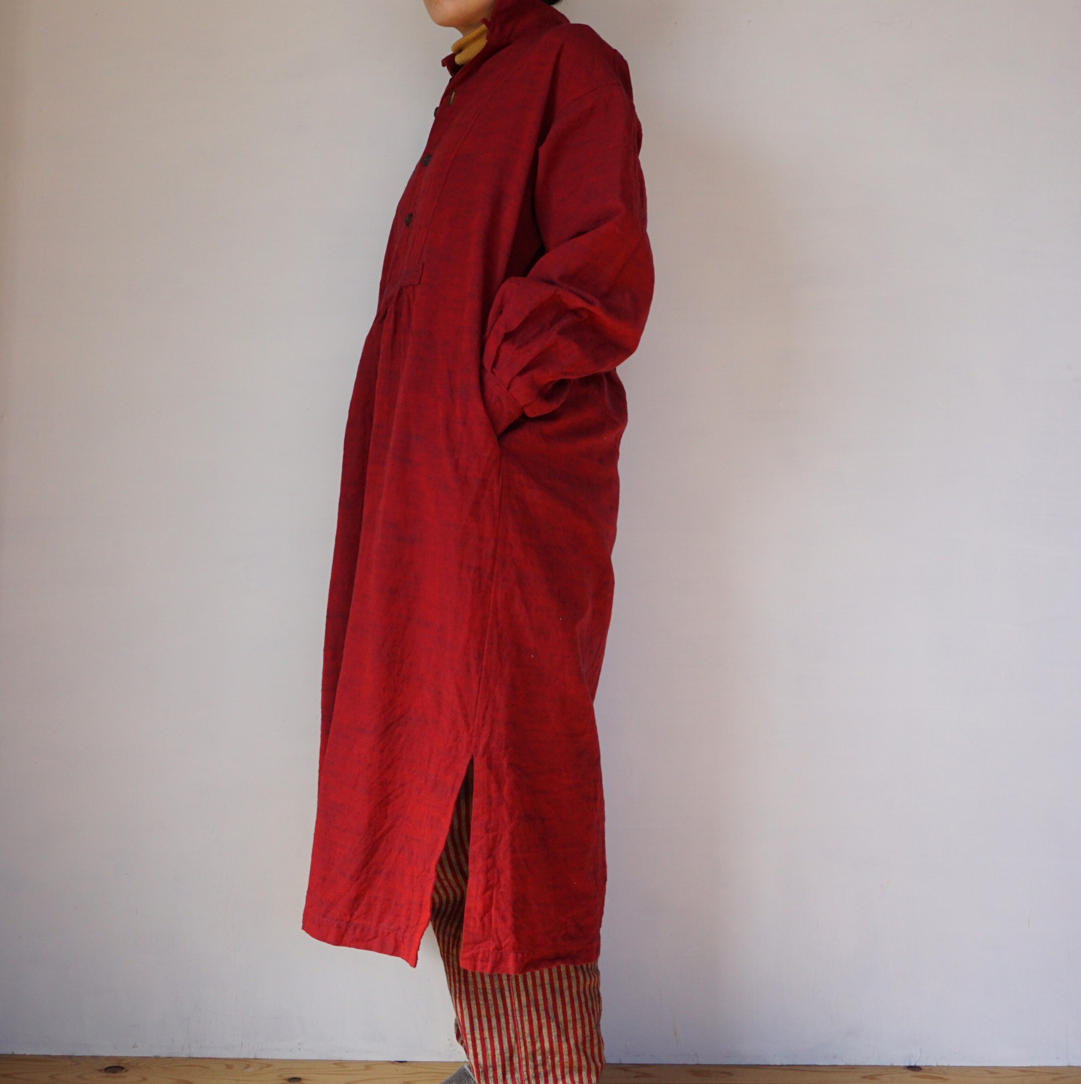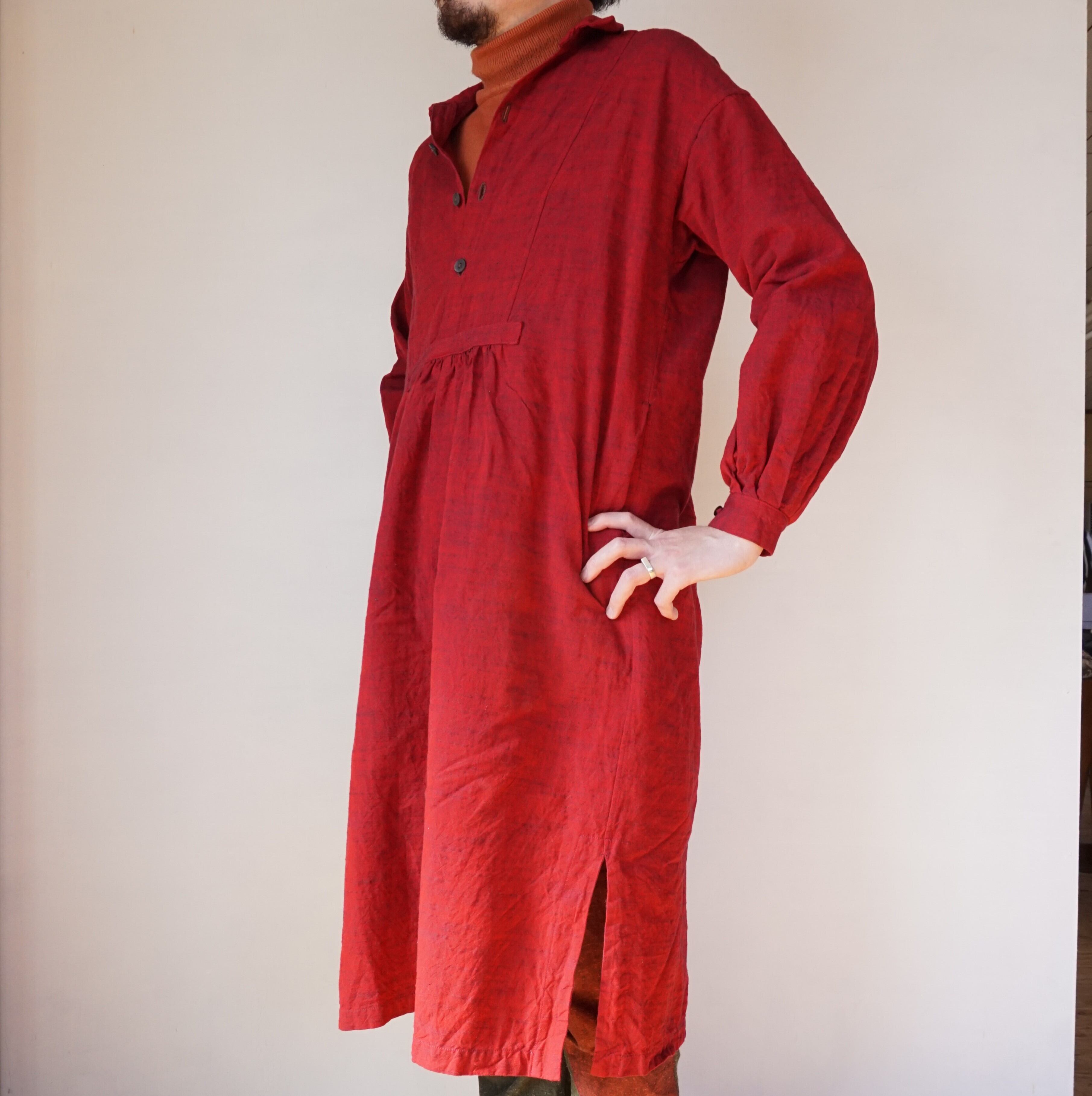 ヨーロッパのアンティークシャツを元に、現代の体形に合わせてパターンを改良したロングシャツです。ボリューミーなギャザーデザインは、シーンを選ばず着用できる優れもの。ワンピースとして着用したり、パンツと合わせるのもおすすめです。袖丈は+3㎝または+5㎝に変更可能です。