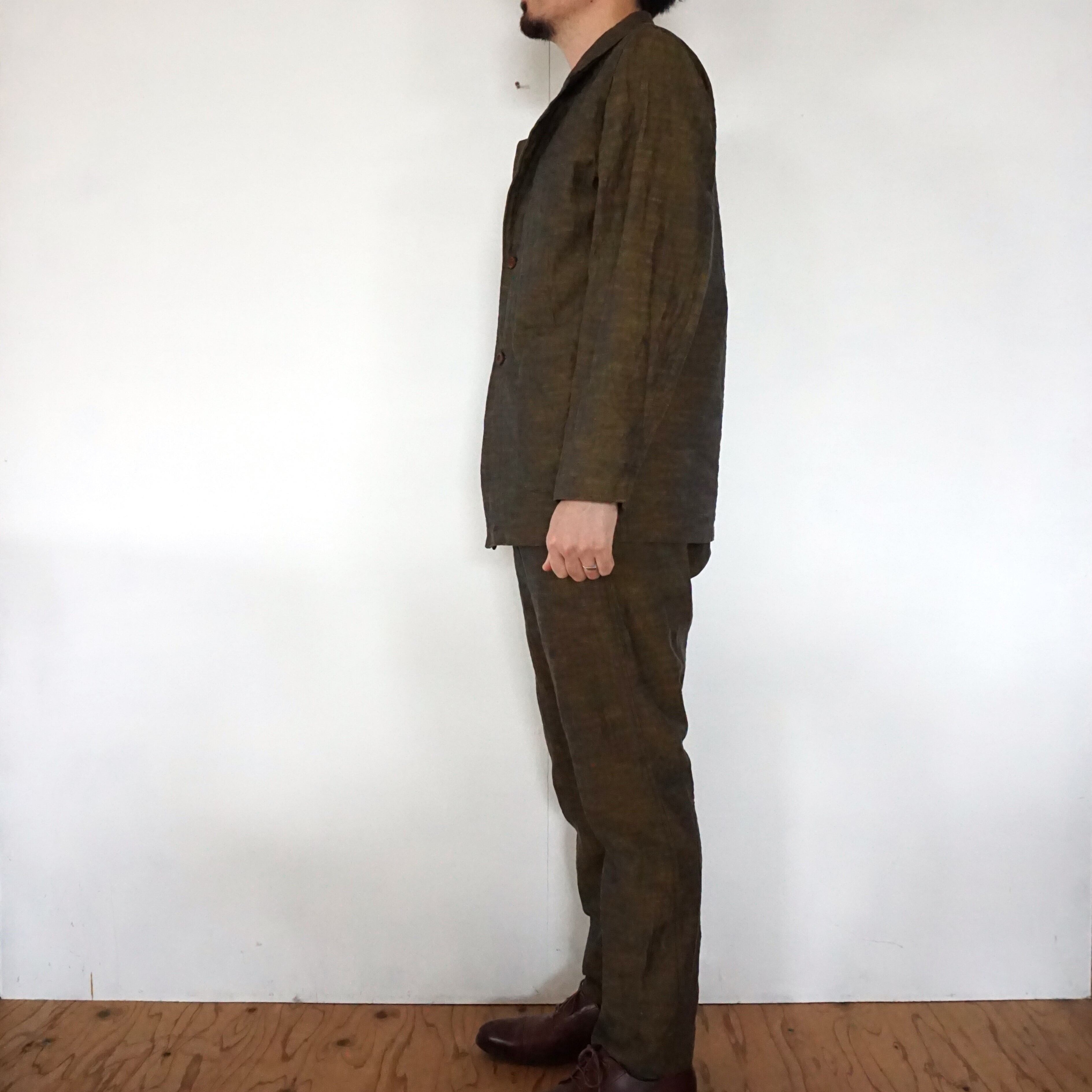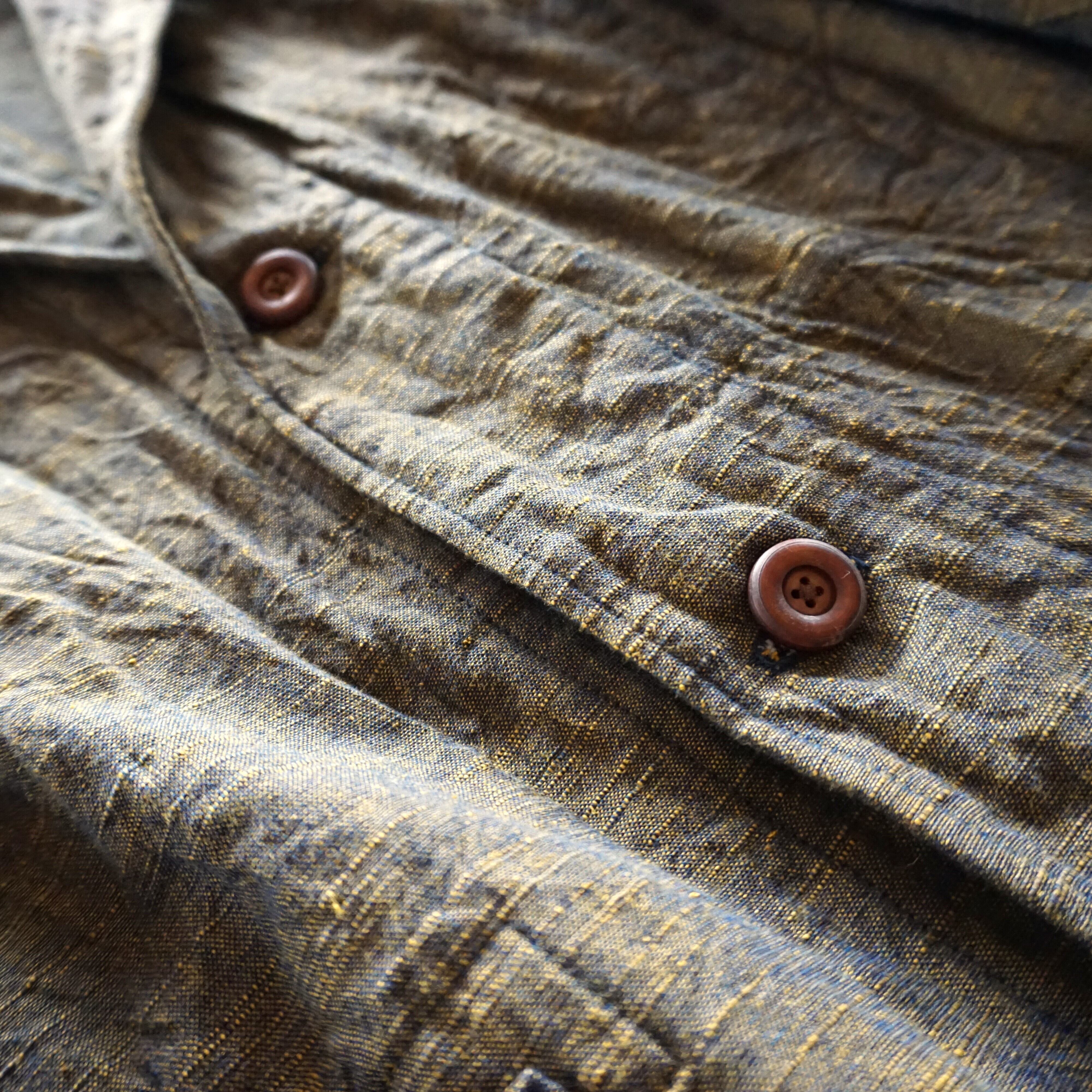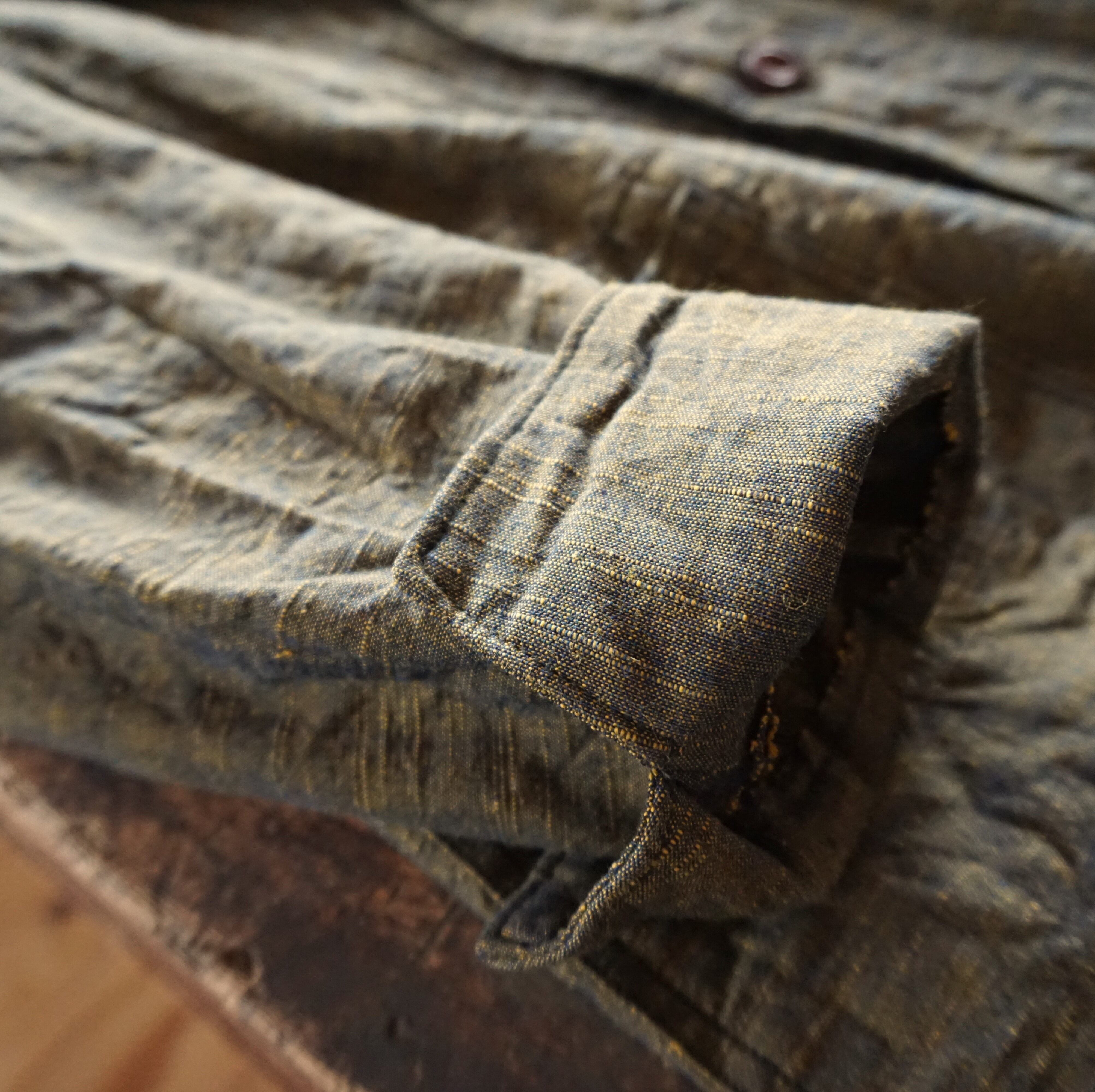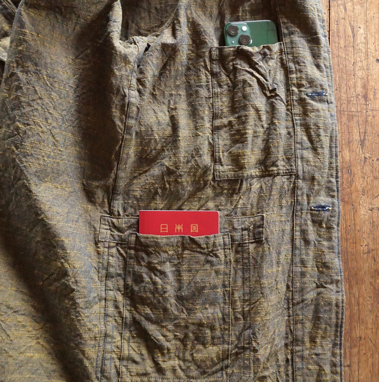 Made from natural Aizu cotton fabric, carefully woven with a shuttle loom. This material, originating from Aizu Wakamatsu, is known for its lightweight, breathable, and quick-drying properties, making it suitable for year-round use. It provides coolness in summer and warmth in winter. Over time, repeated wear and washing help the fabric conform comfortably to your body, creating a personalized garment.