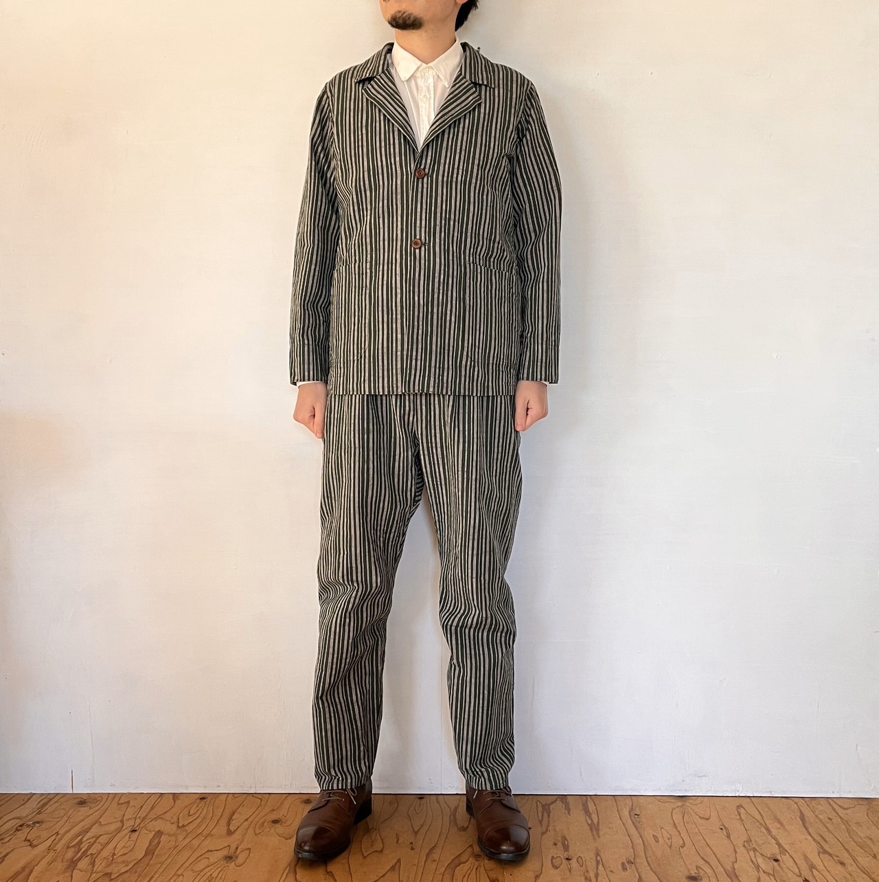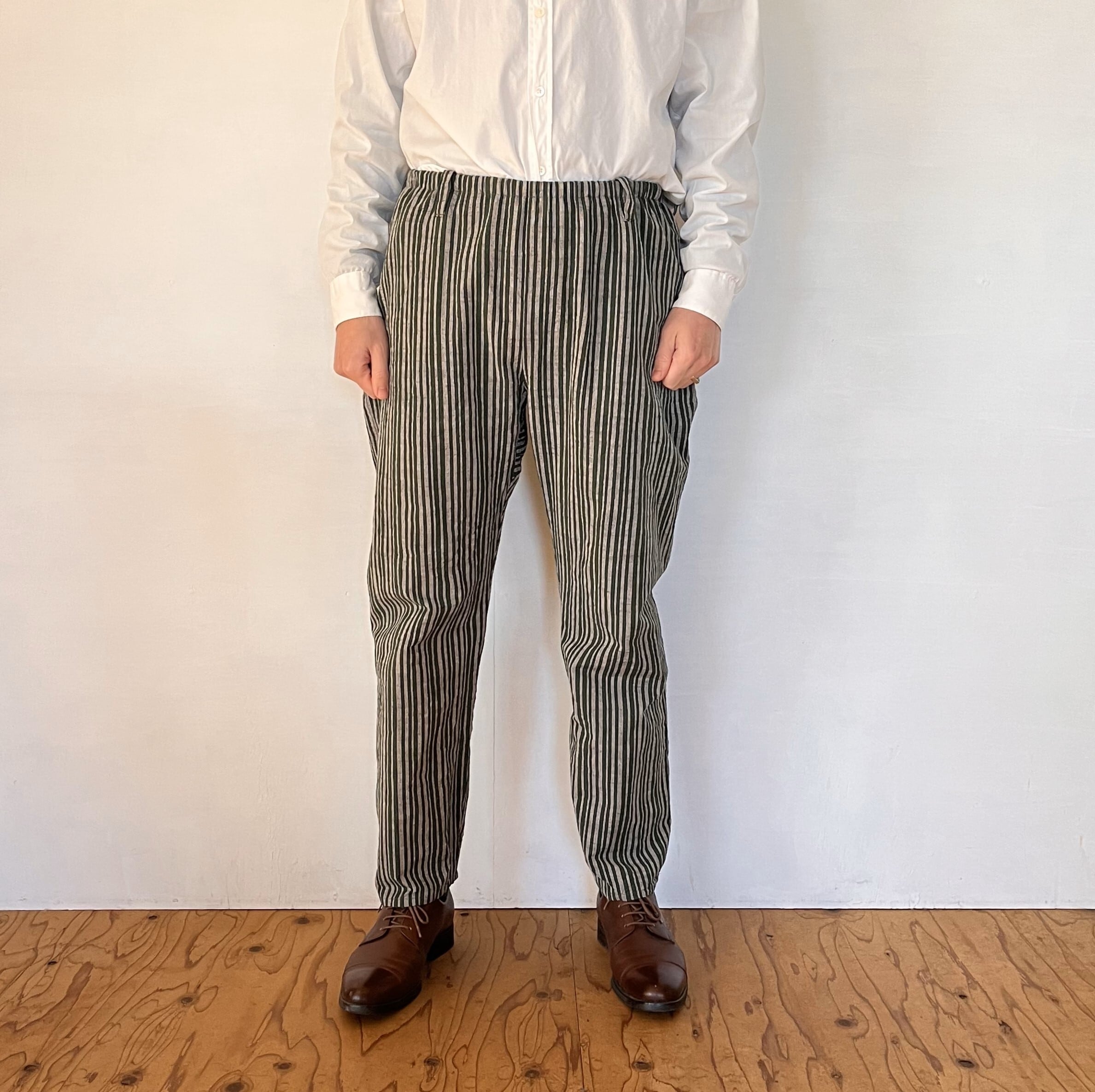 UNISEX 会津木綿テーパードパンツ 縞